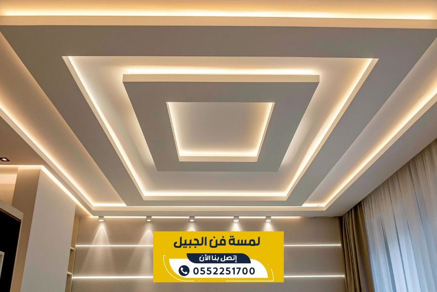 تنفذ لمسة فن الجبيل جميع أعمال الجبس بورد للأسقف والجدران بتصاميم حديثة وتنفيذ متقن حيث يتم استخدام ألواح جبس بورد عالية الجودة مع تنسيق الإضاءة المخفية بشكل احترافي لتقديم مظهر جمالي مميز يناسب المنازل والفلل والمكاتب.